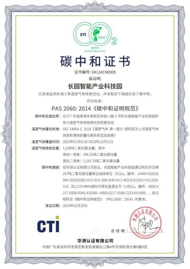 本次园区碳中和的实施,由星空xk科技集团旗下子公司星空综合能源(深圳)有限公司(简称“星空综能”)根据国际标准ISO 14064-1:2018《温室气体-第一部分 组织层面上温室气体排放与清除量化及报告规范》对园区类别1、类别2温室气体排放量进行了核算并出具核算报告,由中国合格评定国家认可委员会(CNAS)授权的第三方核证机构华测检测(CTI),按照ISO 14064-3《温室气体声明审定与核查的规范及指南》对核算报告进行了核查,并根据PAS 2060《碳中和证明规范》对碳中和结果进行了认定。
